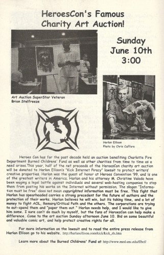 A word about this — I certainly have no problem with creators protecting their intellectual property rights, and I have no personal beef with Harlan Ellison (though by many accounts he’s a bit of a crank), but putting such a cause side by side with burned children is a rough dichotomy. HARLAN ELLISON IS COMING AFTER THE INTERNET AND HE NEEDS YOUR HELP, oh and also there are some horribly scarred kids that you might wish to consider. One seems to trump the other, that’s all I’m saying.