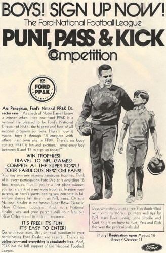 I’d like to thank Jerry Sandusky for totally befouling this harmless Ara Parseghian Punt, Pass & Kick ad