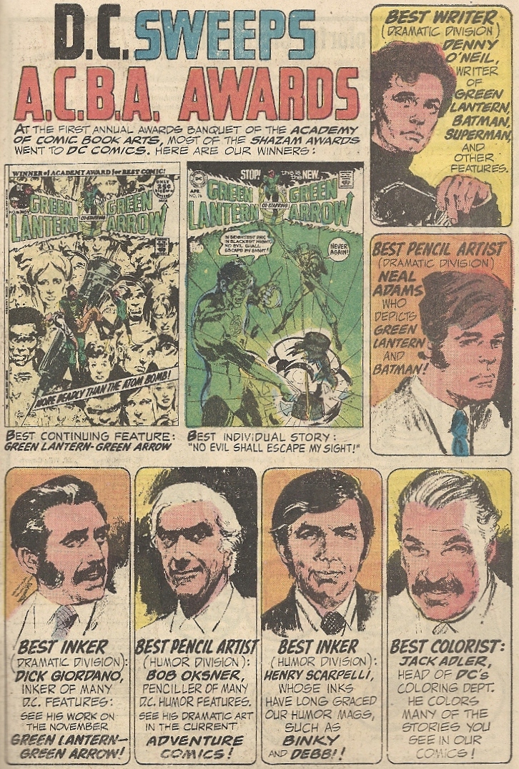Denny O’Neil’s black turtleneck and contemplatively-held glasses surely must have clinched his A.C.B.A. award