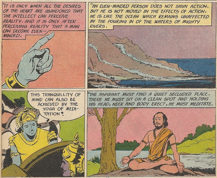 Let’s travel to India, where the comic book pantheon has pre-installed blue guys – Amar Chitra Katha, “The Gita”