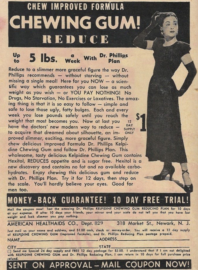 According to 1950s romance comics ads, women back then worried about their weight, appearance, lips and *ahem* lady business