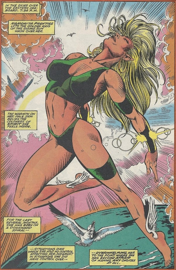 Perhaps as recompense for Infantino’s run on his title, Nova gets to suck face with Namorita. EVEN-STEVEN. – The New Warriors #39