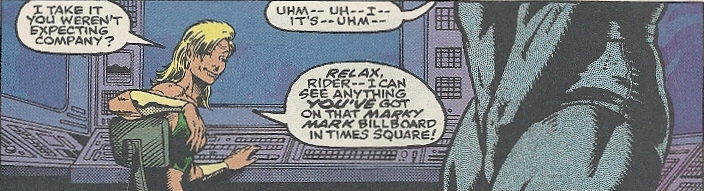 Perhaps as recompense for Infantino’s run on his title, Nova gets to suck face with Namorita. EVEN-STEVEN. – The New Warriors #39