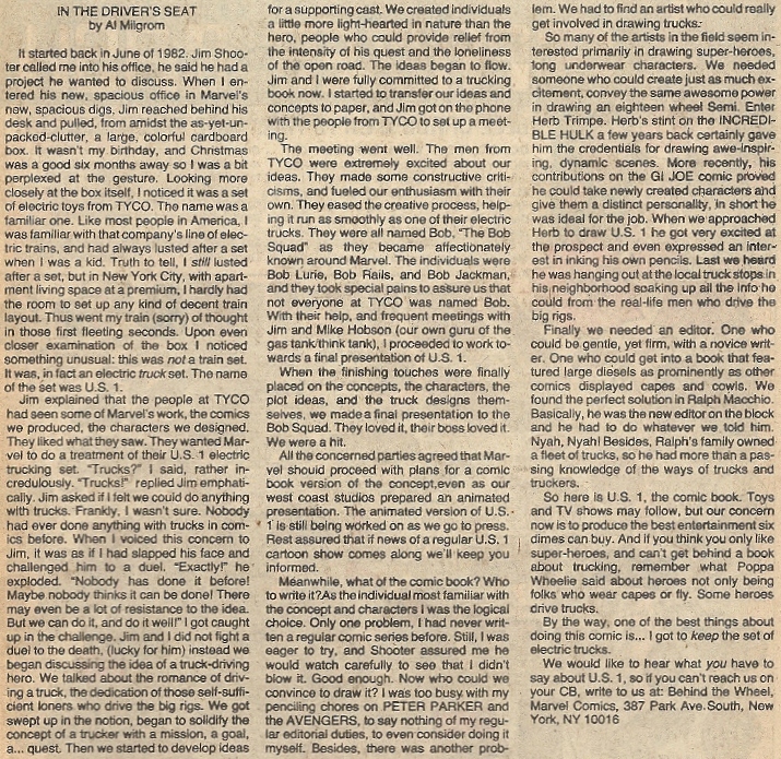 In 1983, the world cried out for a trucking-based comic book hero. Marvel answered that call… – U.S. 1 #1