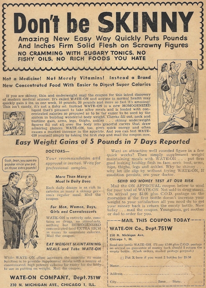 Let’s travel back to the Bizarro World of the 1950s, where women were ashamed of being too thin