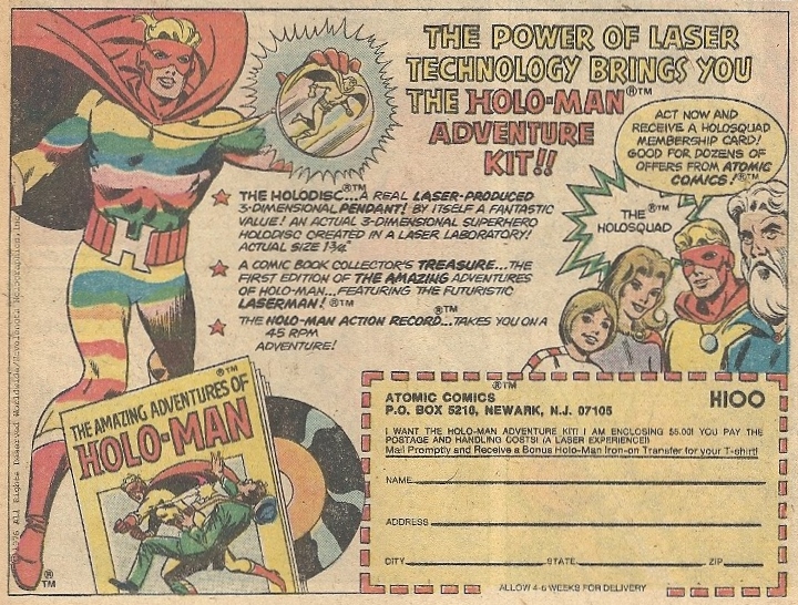 Holo-Man and his amazing technicolor vomit dreamcoat hope you buy his crappy adventure kit (comic and record)