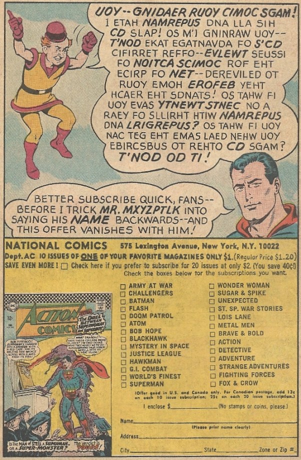 This Mr. Mxyzptlk ad appears to offer you a deal, at least it does if you can wade through the backwards spelling