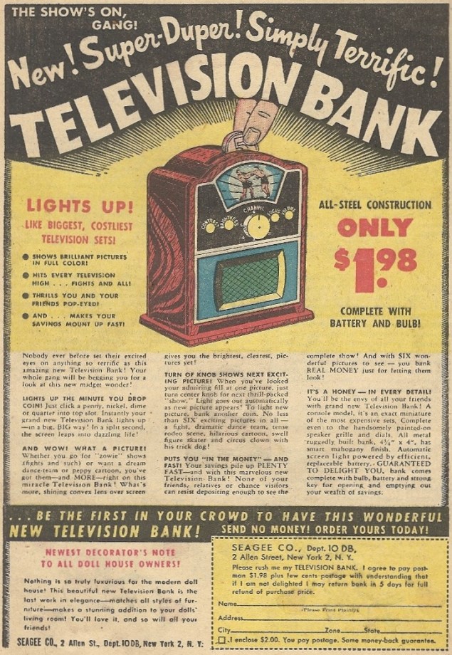 Travel back to 1952, when huge, clunky TVs were still so neat and novel, small piggy bank versions were all the rage