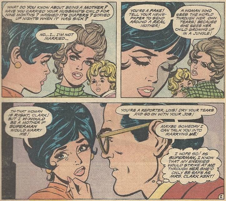 Lois Lane gets a papoose, and subtlety gets a 2X4 to the head – Superman’s Girl Friend, Lois Lane #110