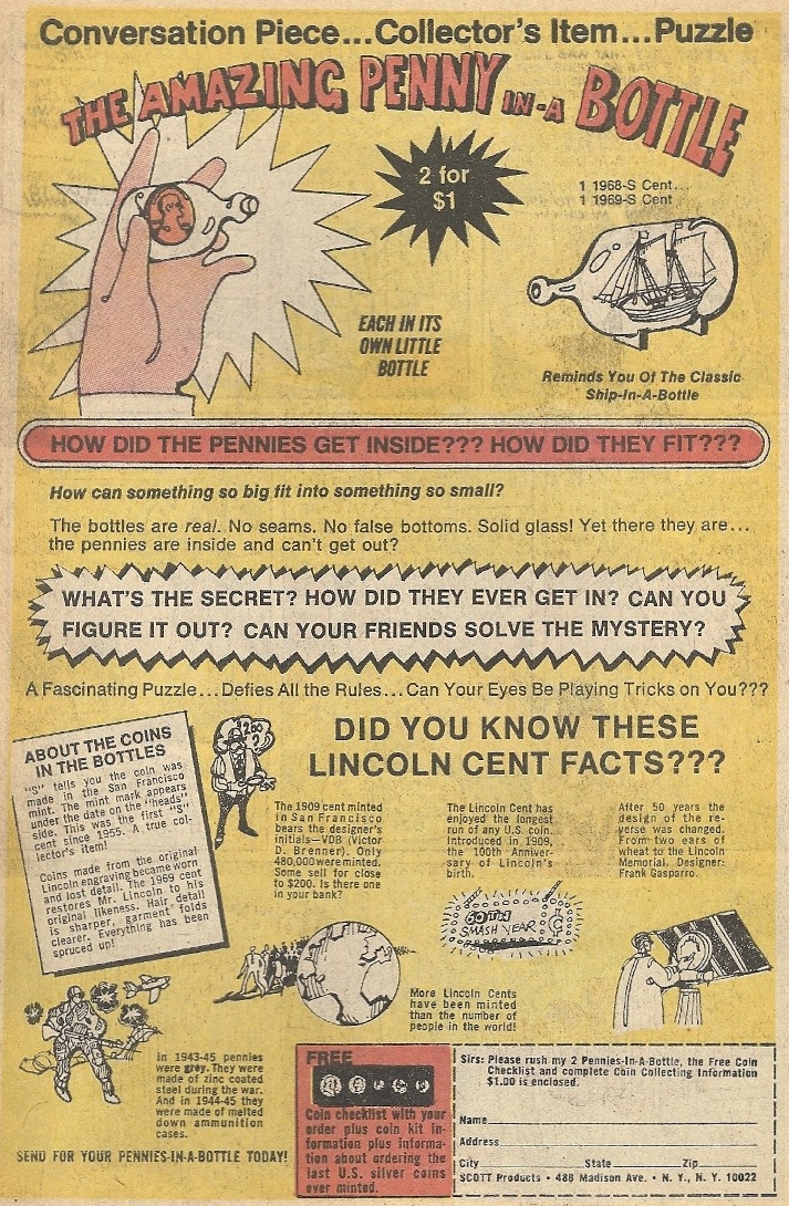 Message in a bottle. Ship in a bottle. Penny in a bottle?