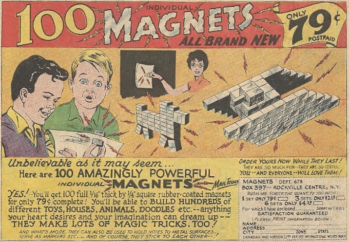 If the colorful, interlocking-plastic-blocks magic of Legos is somehow anathema to you, then maybe 100 unadorned magnets will be more suited to your Spartan aesthetic tastes. And you can erase audiotapes and strip the data from your parents’ credit cards! A plus!