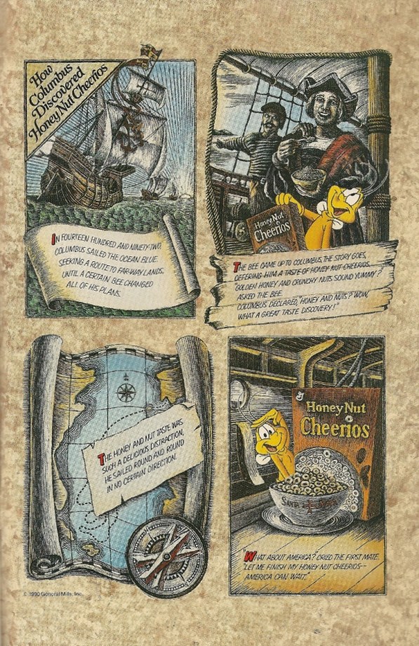 Christopher Columbus discovered Honey Nut Cheerios? (Also, Buzz the Bee is an ageless vampire)
