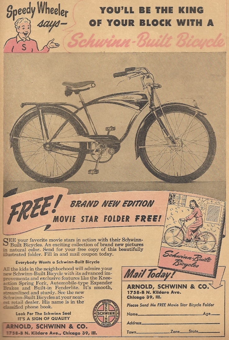 Buy a Schwinn bicycle, get a folder of 1940s movie stars