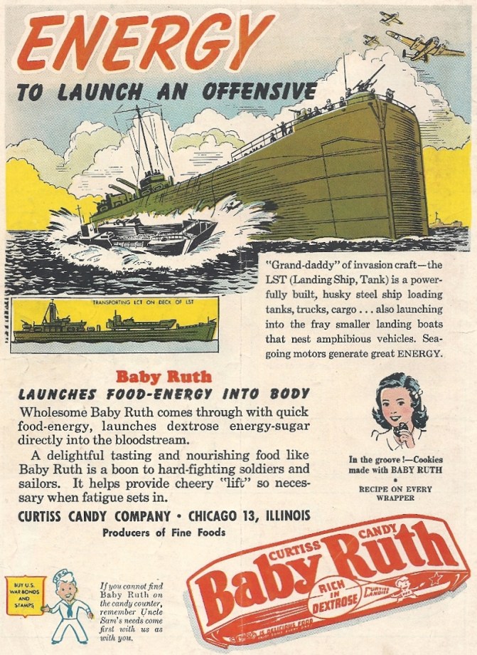 Baby Ruths: Now powering dainty little girls and all our fighting ships at sea!