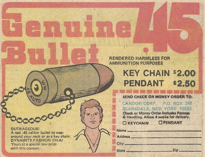 Be a groovy 1970s dude and wear this bullet around your neck! Wait, what?