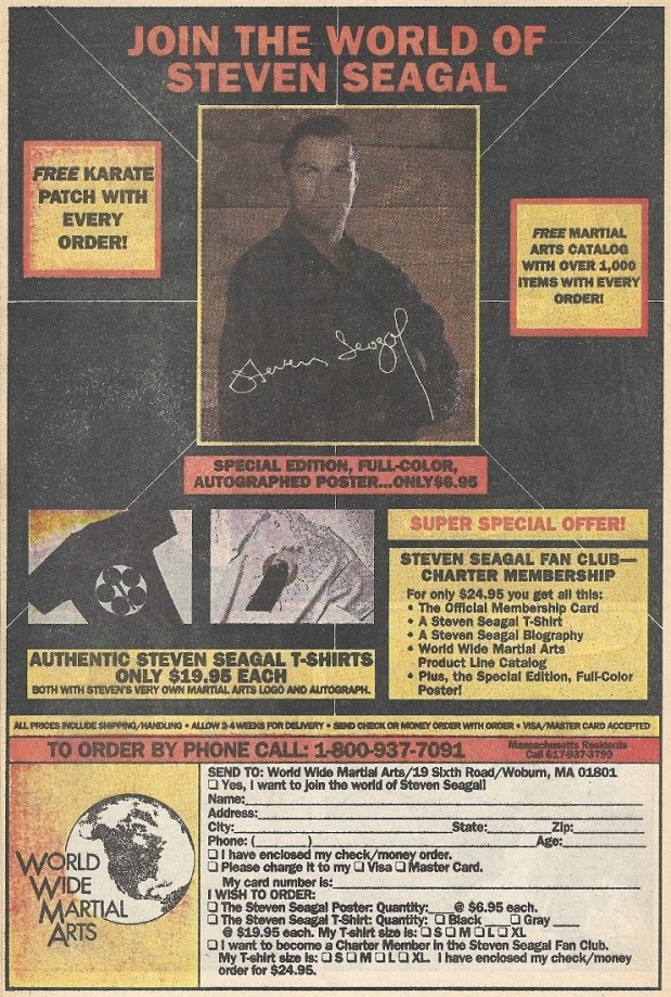 Join the zero other people in the Steven Seagal fan club and get loads of Steven Seagal junk!