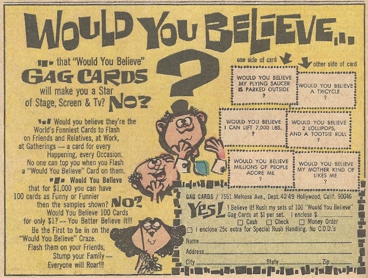 Would you believe the Would You Believe gag cards have nothing to do with