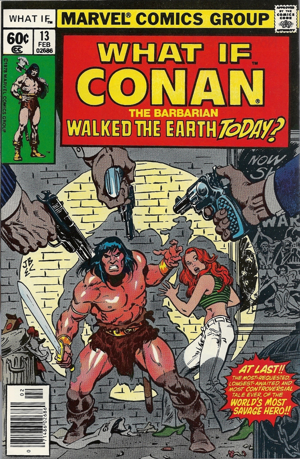 Roy Thomas, John Buscema and Ernie Chan conjured this goofy masterpiece, which answers the burning question of “What If Conan the Barbarian Walked the Earth Today?” I’ll skip any commentary about Uatu the Watcher’s customary opening ramblings (and even he looks rather beefy under Buscema’s ministrations) and how Conan is transported forward in time (it involves his usual mix of wenches and wizards), and simply begin with Conan getting plopped down in Greenwich Village: