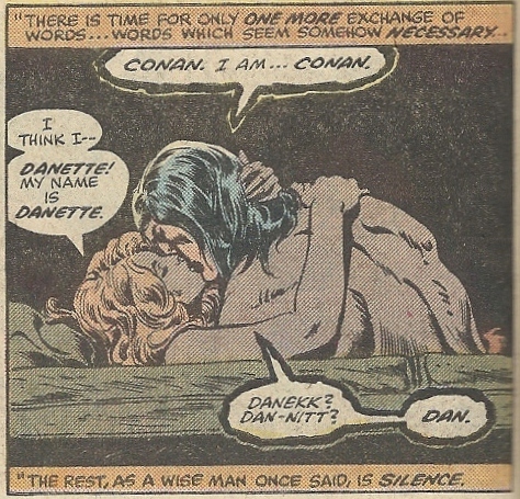 She does what any young woman would do when confronted with a half-naked, sword-bearing man — she decides to take him back to her place. On the way, Conan vocalizes a thought similar to ones I’ve had on certain dates: