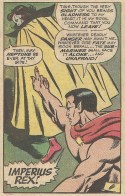 With Brule, a muscular ally whose physique, along with Kull’s, would seem to indicate that anabolic steroids were easily obtained in olden times, he sneaks into his former capital and uses hidden tunnels to access the palace. There he confronts Doom, who unleashes the pocket Balrog from the cover: