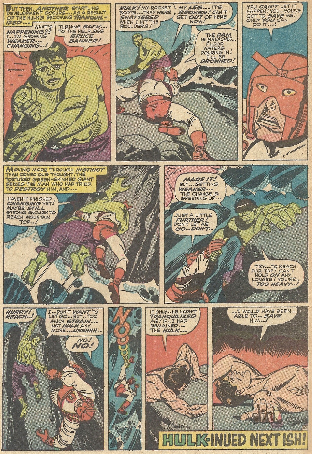 Gil “Sugar” Kane. Ha ha, Stan. I suppose I knew that Kane did some work on Hulk stories at this time, but I guess I’ve never stumbled across any until now. Or I just forgot. One or the other. Whatever the case, I very much like what Kane did with the Hulkster.