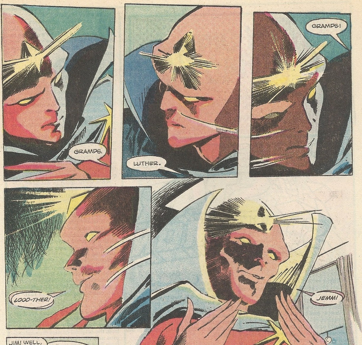 Later on in the first issue they finally get around to the obligatory name exchange, as Luther and his (conveniently) blind grandfather try to figure out what the deal is with this stranger: