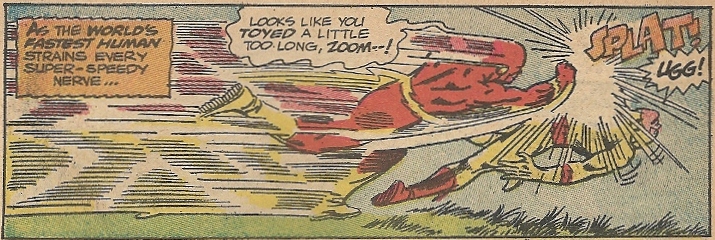 But escape he does, which brings us back to the “present.” Barry kidnaps “Barry” and once away from the assembled guests they agree to duel for the right to marry Iris. You might wonder why Barry doesn’t inquire just what Zoom’s claim to Iris is exactly, but whatever, this challenge means it’s time for high-speed ass-kicking. SPEED LINES AND SPLATS GALORE: