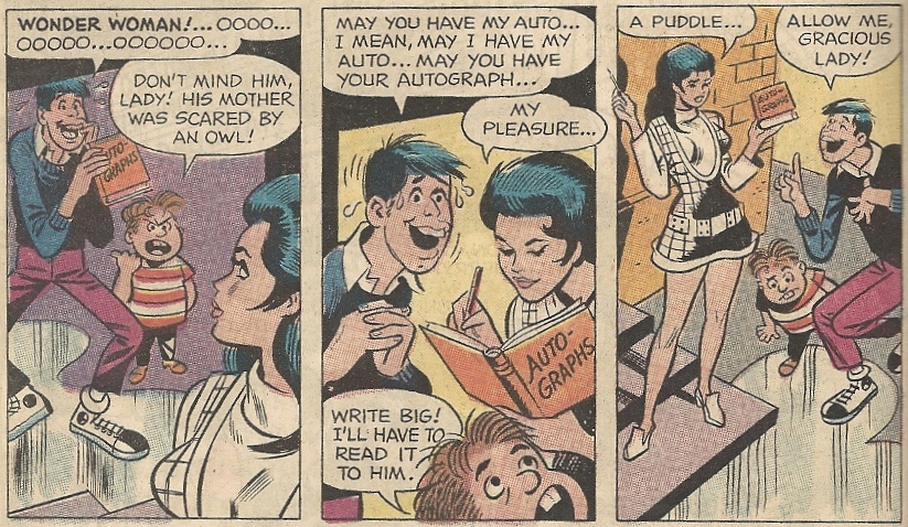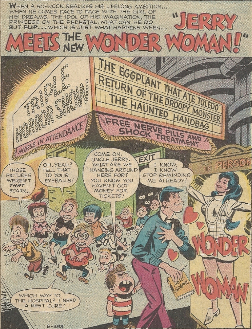 It is with profound repulsion that I present you with “Jerry Meets the New Wonder Woman” (the creative team isn’t listed inside, and I’ve had difficulties locating info on that — see below — so anyone with knowledge, please chime in):