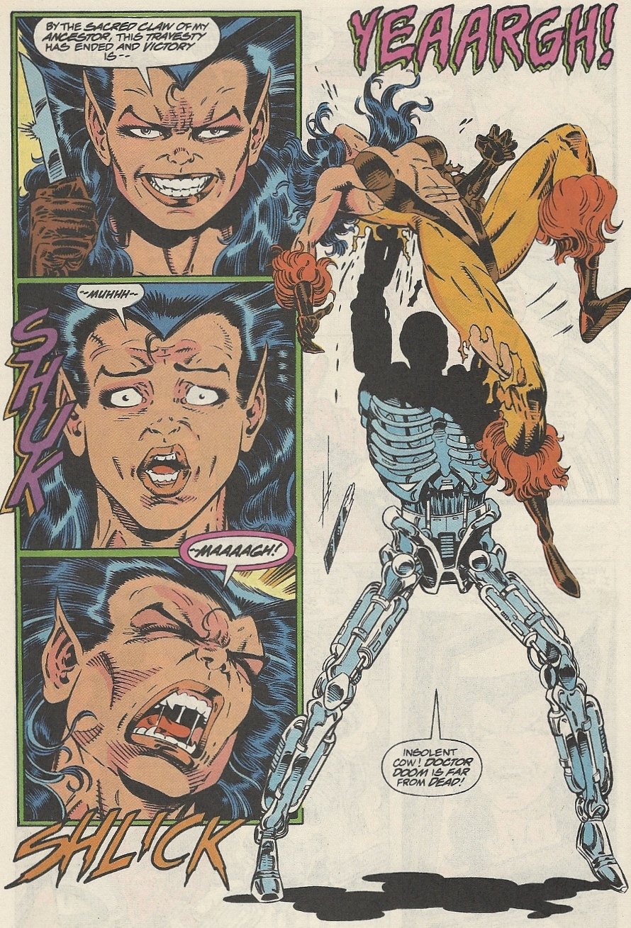 I’m a bit surprised that Doom didn’t break out a “Bah! Richards!” just out of ancient habit, but “Insolent cow!” is a hell of a substitute. I’ll have to remember that one for any future sour romances.